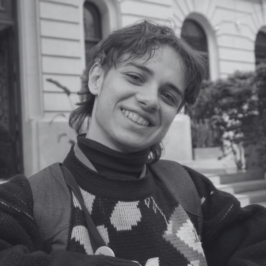 Florentina González: Directora de animación independiente y artista visual. Estudió en la Universidad Nacional de las Artes y se especializó en animación en la Escuela Da Vinci. En 2020, realizó el Programa de Cine en la Escuela Di Tella, con foco en la experimentación audiovisual. Dirigió “El After del Mundo” y “Trompita y la migración de liebres”, ambas seleccionadas en festivales nacionales e internacionales. En 2023, realizó su primera exposición individual, “Huesos de Azúcar”, en la Fundación Andreani, donde presentó una instalación de videos animados y dibujos en papel.